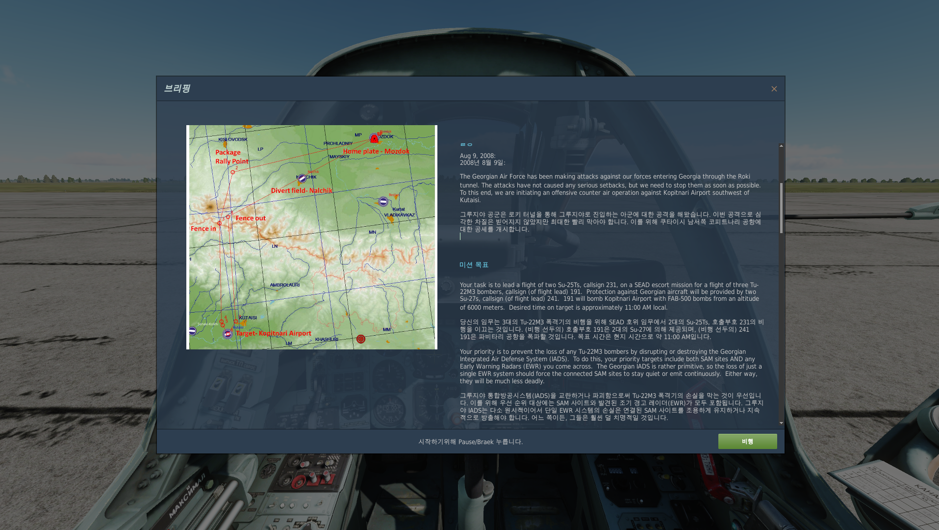 Event Information Price ₩8,000 per participant Location GGs-Campaign 서버 #1 Start Time 12:00 오전 2025년 11월 1일 Finish Time 5:00 오후 2026년 1월 25일 Capacity Limited to 20 people DCS (Digtal Combat Simuator) – 항해 : 훈련 미션 – 기종 : Su-25T mileage 80 한글 번역 파일 적용 cold start 시작 로그 파일과 미션 수행 스크린 캡쳐 3장 또는 녹화영상 제출 Practical assignments at the end of every session. Event Participants 훈련교관 #1 전술교관 #2 Creative Director Share: Previous Event AV-42C 튜토리얼 Next Event 첫 단독 비행 실기 평가 Leave A Reply 응답 취소댓글을 달기 위해서는 로그인해야합니다.