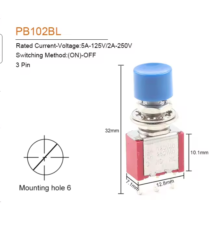 3핀 6mm, C-NO-NC, 2A 250VAC, 5A 120VAC 버튼